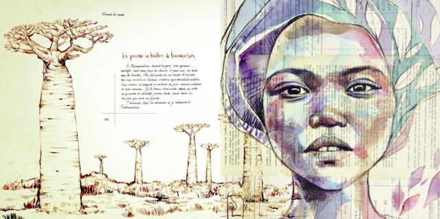 RépondreSupprimerj'ai eu la chance de découvrir il y a peu de temps ce livre, qui fait parti maintenant de ma bibliothèque et c'est véritablement un bel objet d'art, un beau travail d'illustrations, dont je ne me lasse jamais de le feuilleter pour me noyer dans les écrits et ces portraits qui nous donnent envie de s'évader.